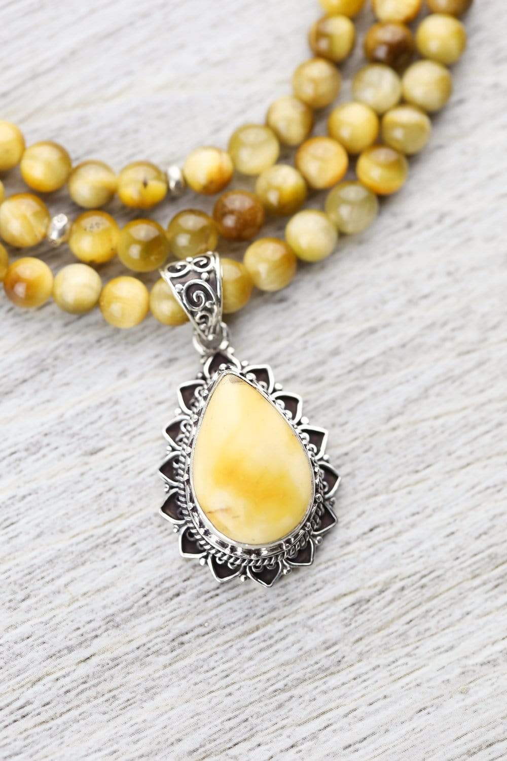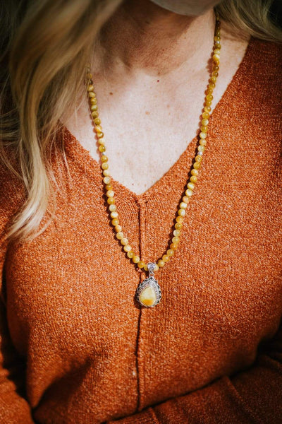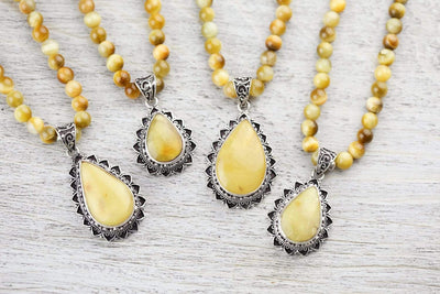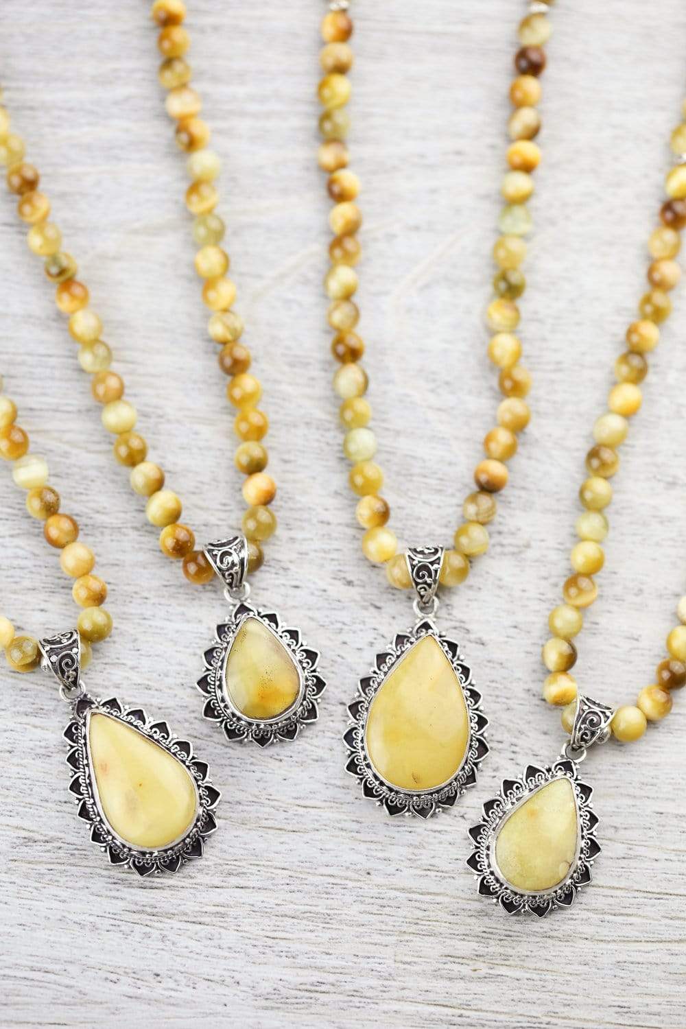Beads are 6-7mm. Pendant measures about 1.6" tall from bale and 0.8" wide.*As each pendant is handmade, style or shape of stone may vary slightly - please let us choose.*