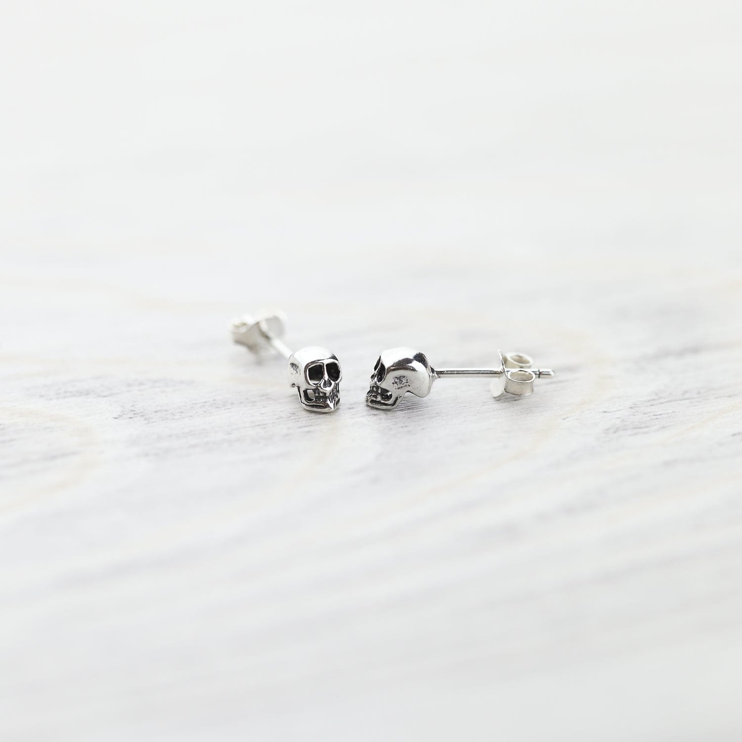 • Sterling silver skull earrings handcrafted by skilled silversmiths in Thailand.