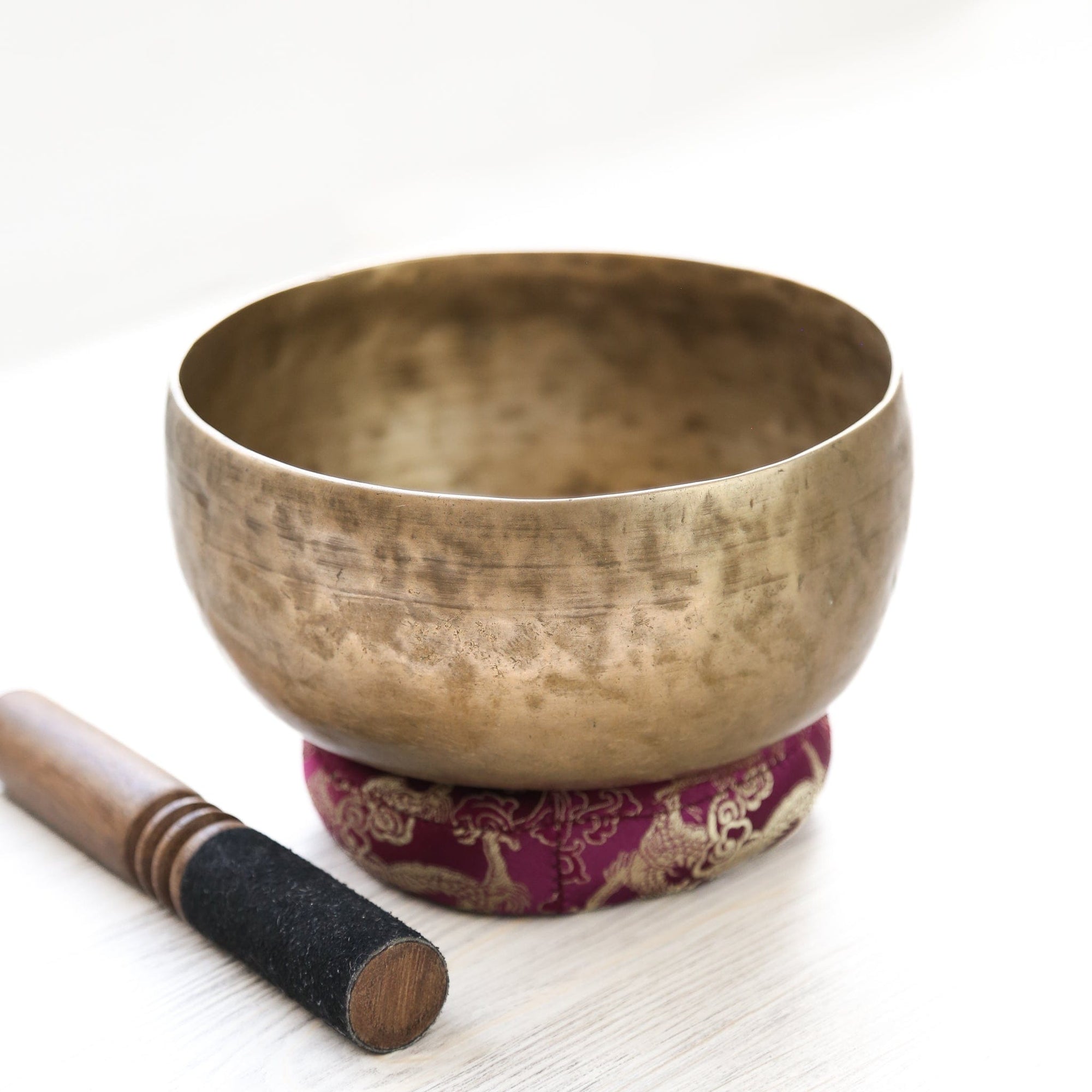 • The bowl was hand selected by the DharmaShop team in Nepal from a stunning and superior collection of antique bowls for their amazing quality of sound.