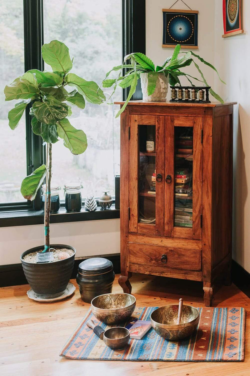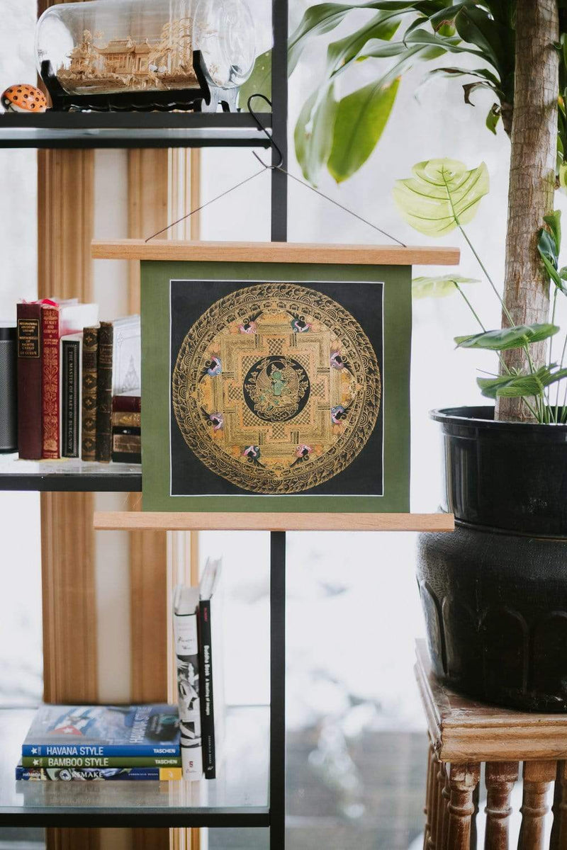• Handmade in Lalitpur, Nepal by a 4th and 5th generation crafting family, this statue is made of hand carved Quartz Crystal that is wrapped in bronze and then gold-plated. Manjushri is seated upon a hand carved wooden base.