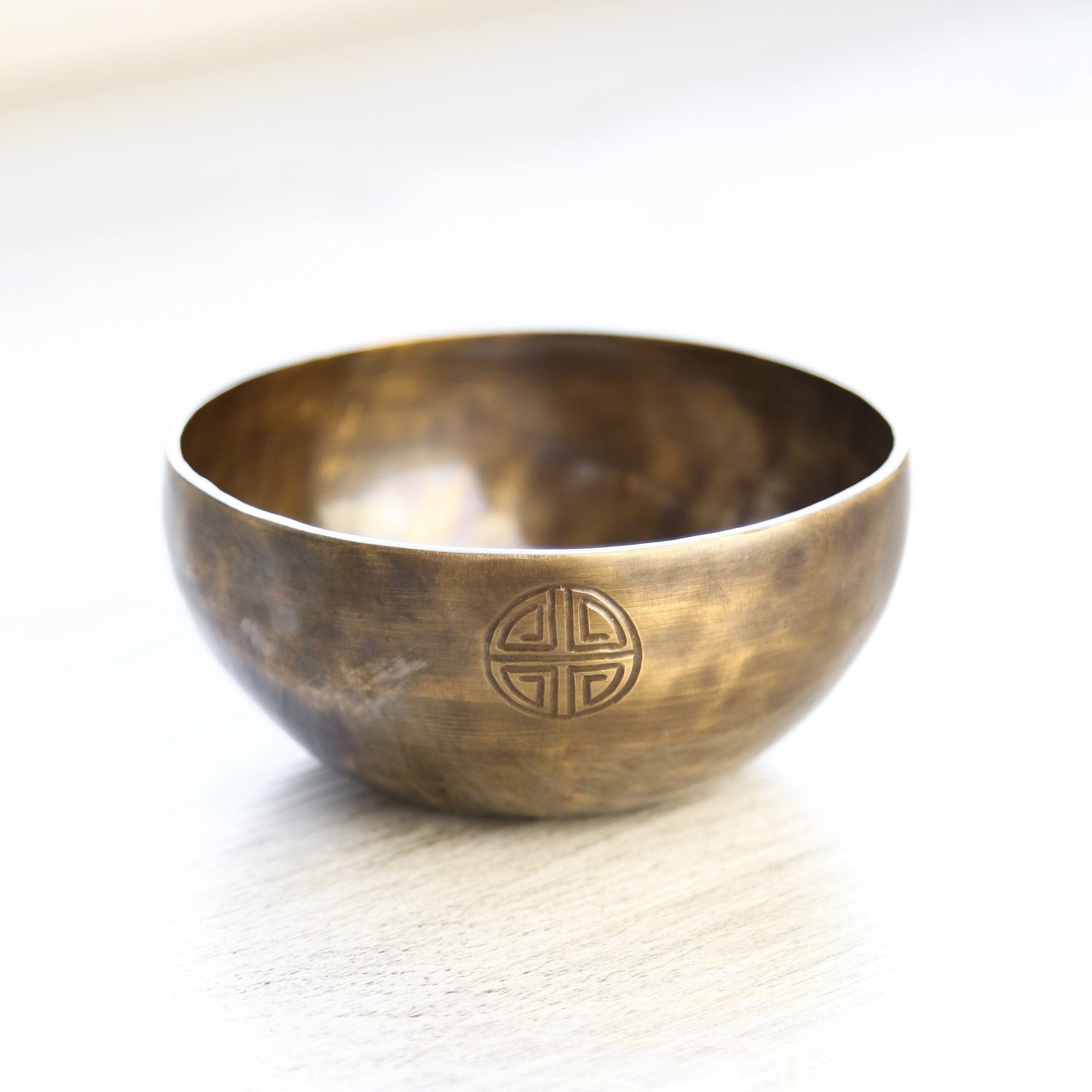 Each bowl features gorgeous hand carved details including an exclusive Full Moon Singing Bowl stamp and the mantra of compassion in Tibetan script. The mantra invokes the powerful benevolent attention and blessings of Chenrezig, the embodiment of compassion. The Full Moon Singing Bowl stamp is also known as a symbol of longevity and happiness.