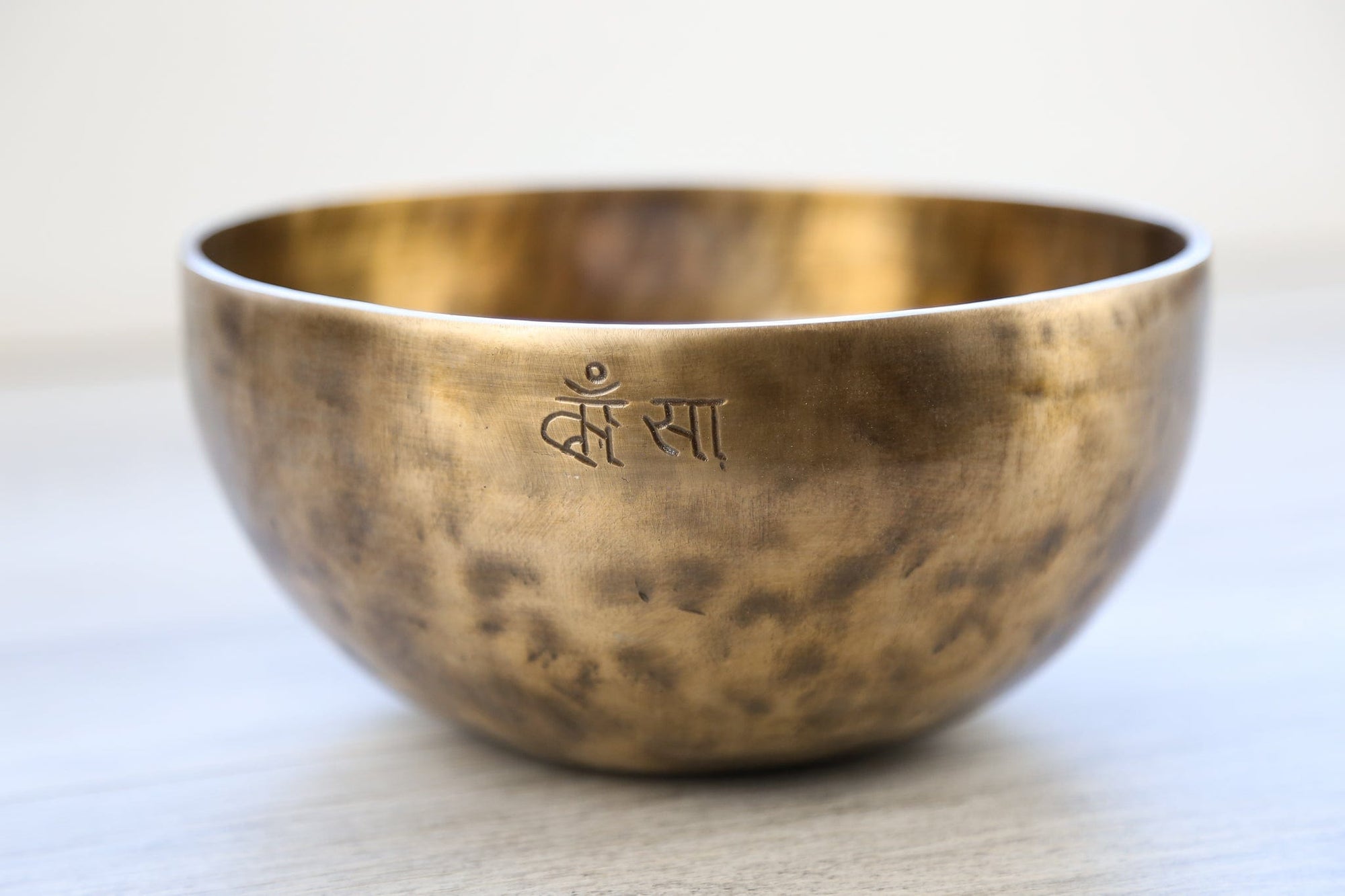 Each bowl features gorgeous hand carved details including an exclusive Full Moon Singing Bowl stamp, an original makers mark, and the mantra of compassion in Tibetan script.