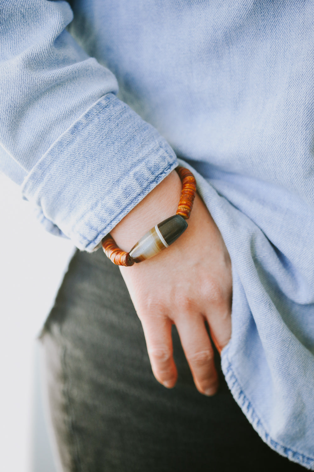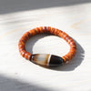 In the winter of 2023, Sander, founder and owner of DharmaShop, was contacted by a collector friend he has known for nearly 20 years. This collector typically works in Tibetan ritual artifacts and ancient beads, and contacted Sander right away upon acquiring this special bead for his private collection. This is an heirloom belonging to the traditions and region of Tibet and the Himalayas. Recently, Sander decided to string the bead with vintage-style Tibetan bone to create a one-of-a-kind bracelet and offer it to our DharmaShop community.