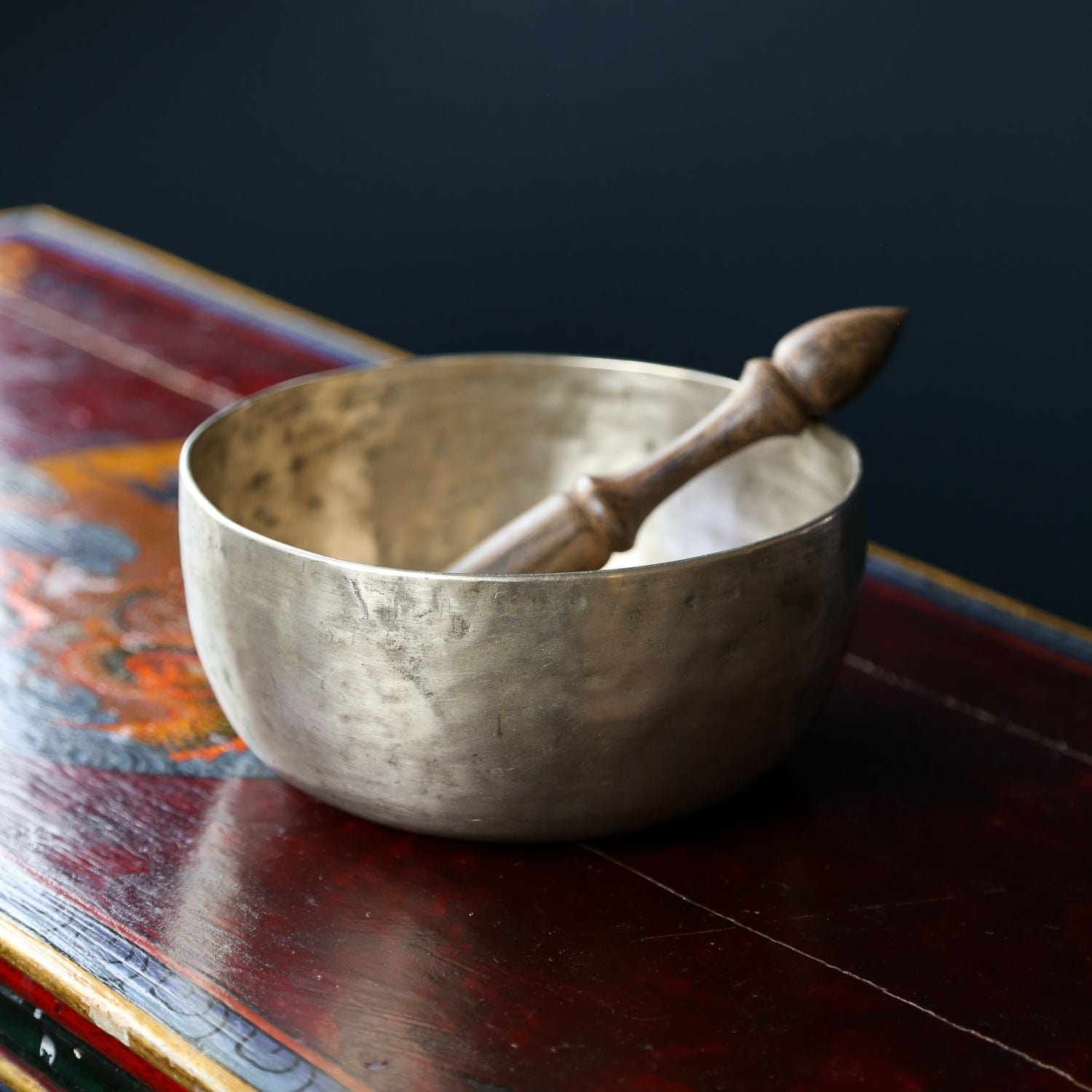 • A one-of-a-kind antique singing bowl acquired from one of our favorite singing bowl collectors and sound therapy practitioners in Kathmandu.