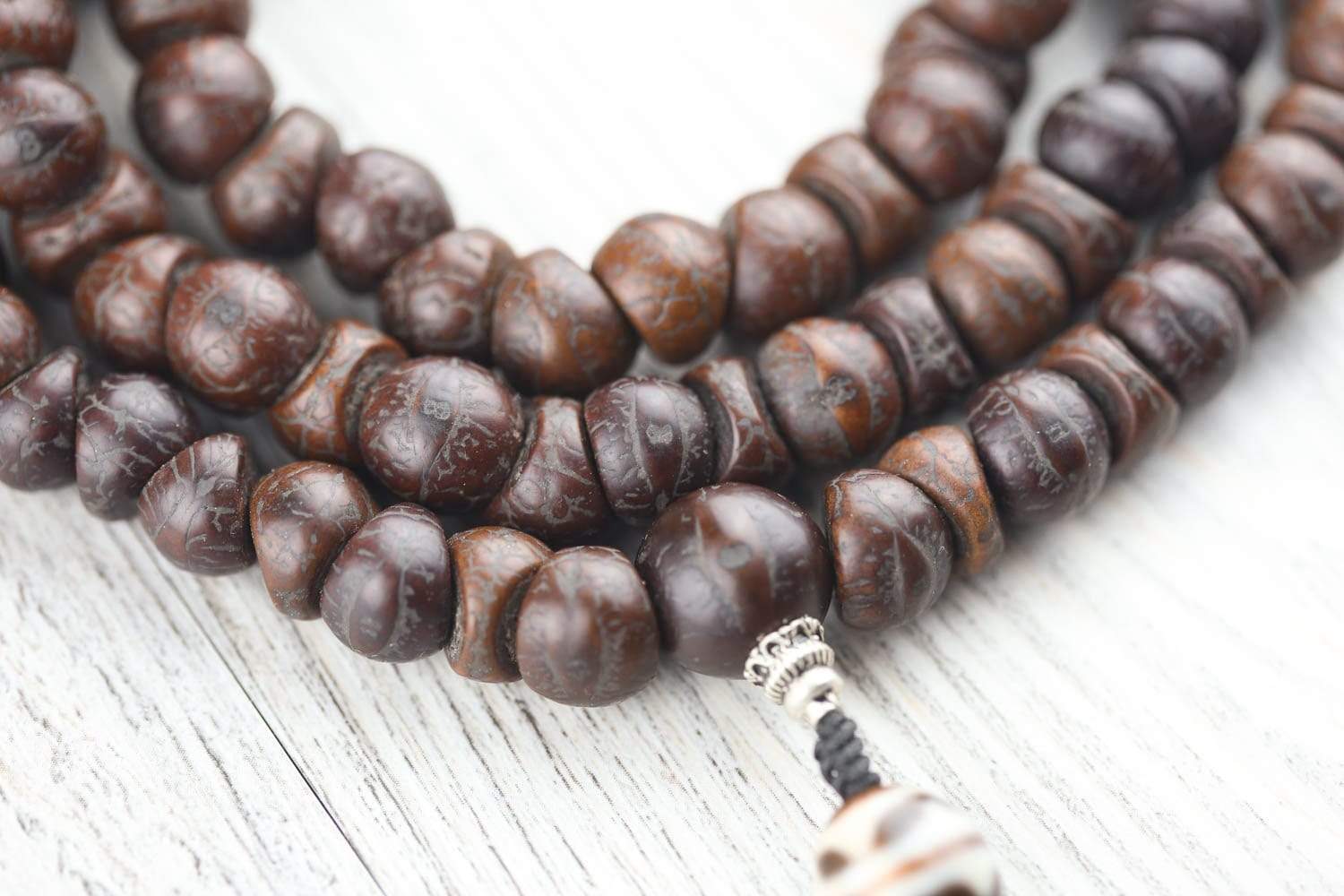 Mala Beads 9 Eye Dzi Astrology & Petrified Wood Wrist Mala
