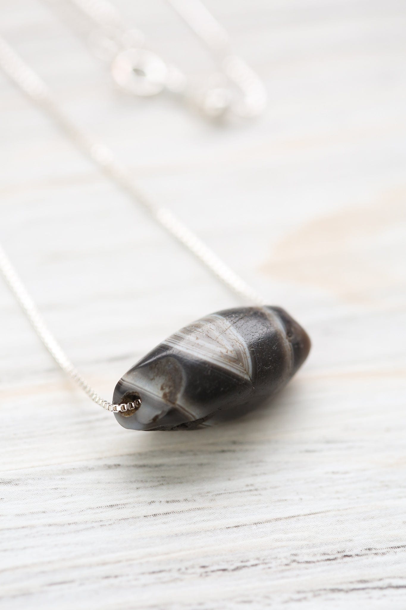 • Striped agates like this are considered the "Mother of Dzi" — the original beads Tibetans collected before the more elaborate "eye" designs emerged. Every detail and marking reflects the foundation from which the tradition of Dzi beads grew.
