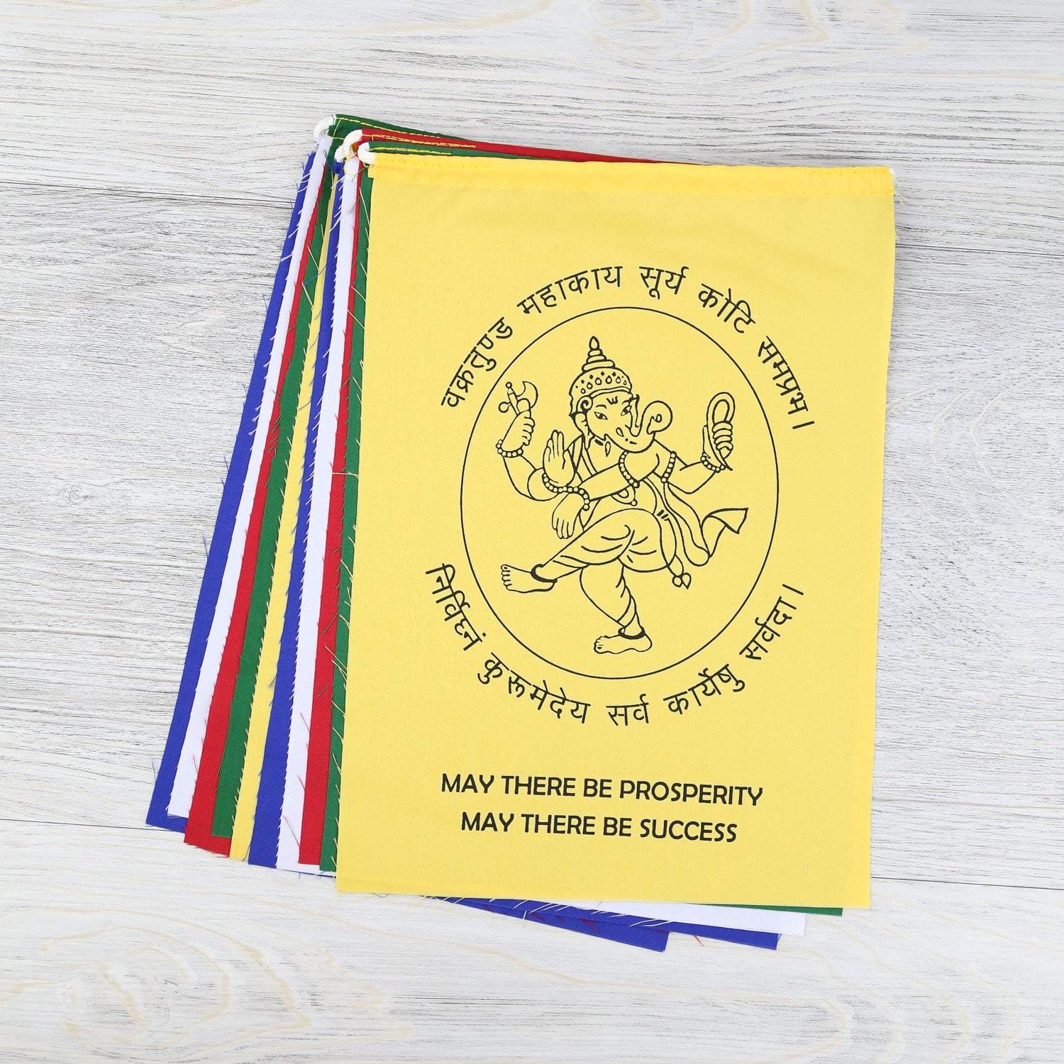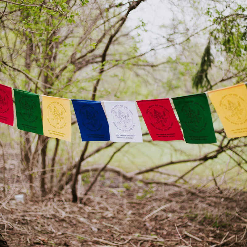 Handmade in Nepal, these prayer flags are printed in English or feature English transliteration. Prayer Flags are auspicious flags that contain images of deities, mantras and prayers.  They are traditionally believed to bring happiness, peace, prosperity, good fortune, health and victory over obstacles.