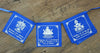 Set includes 8 flags that measure approximately 4 by 4 inches.  Entire strand is about 3 feet long.  Handmade of cotton in Nepal.
