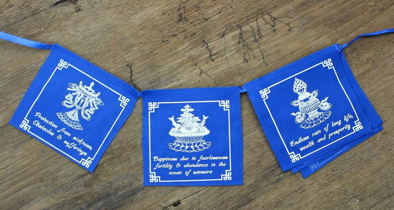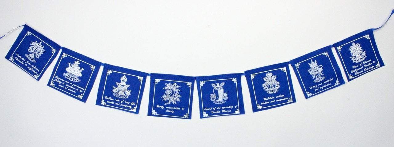 • Each flag features a screen printed image of one of the 8 Auspicious symbols with an English description.