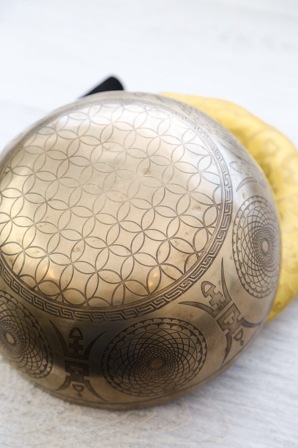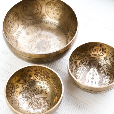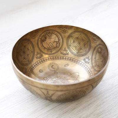Based on the principles of sacred geometry, many of the designs on this bowl can be used for meditation to connect on a deeper spiritual level. Specifically, the Flower of Life is one of the most important and sacred patterns in the universe. It is one of the strongest sacred geometric shapes and can be used as a tool for connecting during meditation.