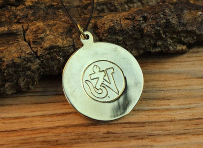 A bold eternal knot pendant hand made in Nepal. Can be reversed.