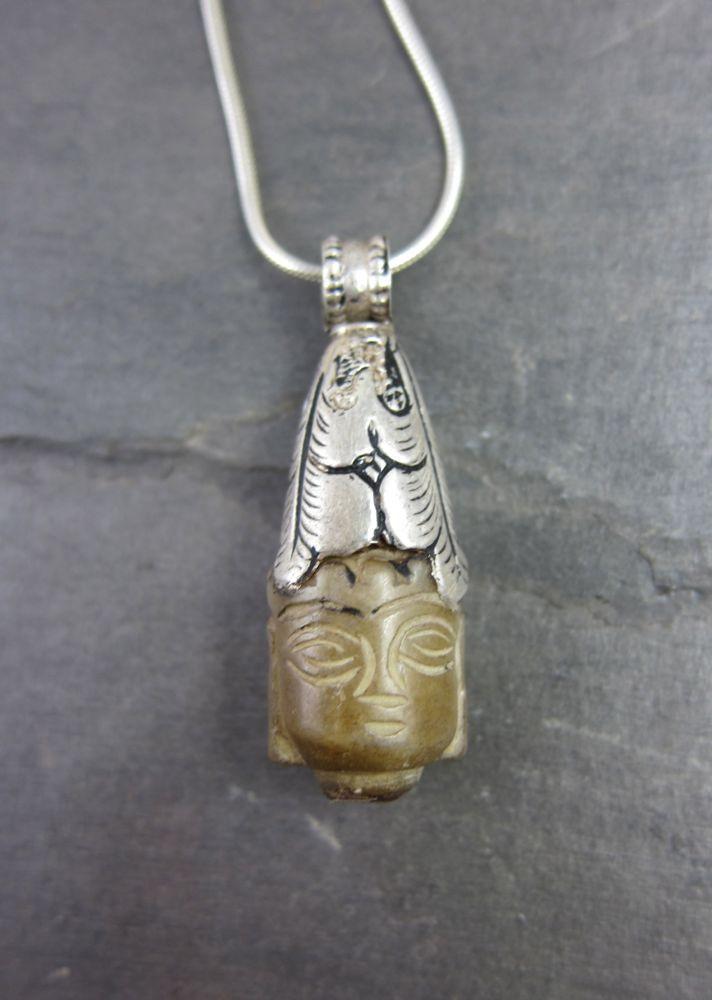 Amazing Jasper pendant with hand carved Buddha face. Handmade in Nepal