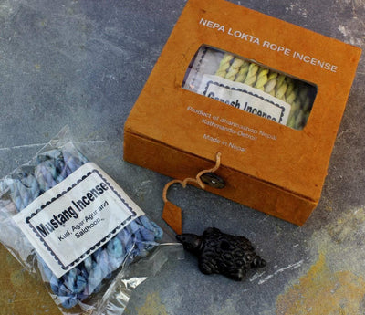 Nepalese rope incense is the traditional stick incense used in Nepal for Puja, meditation, and shamanic healing practices. Contains Ayurveda and different composition of the herbs from the Himalayan region which is made by the local Newar women groups in Kathmandu Valley. Comes with a handmade, clay turtle incense holder.