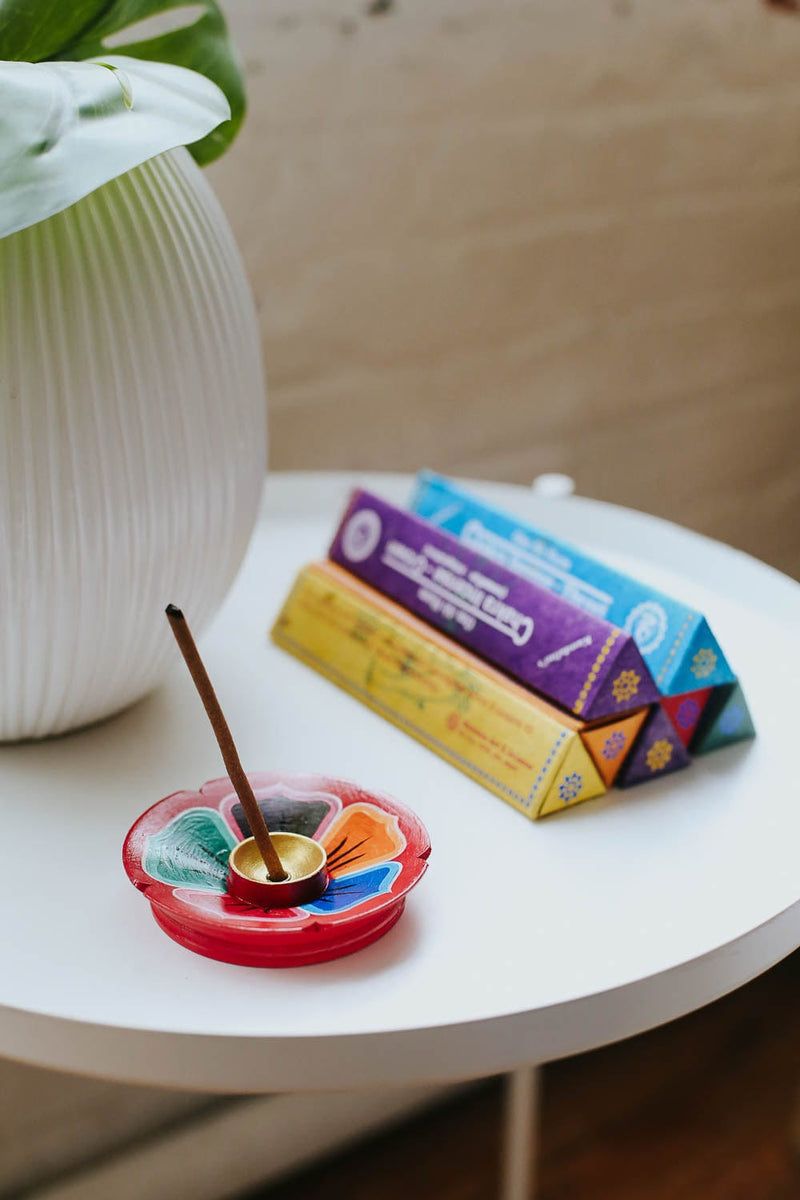 Himalayan rope incense is the traditional braided form of incense used in Nepal for Puja, meditation, and shamanic healing practices. Typically, each rope contains Ayurveda and various blends of herbs from high in the Himalayas. Not only is this ceramic holder great for burning rope incense, but it is a stylish addition to your home decor.