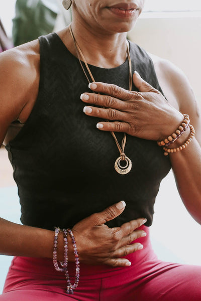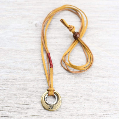 5. Consciousness Necklace. Stylish hand hammered brass and silver double ring pendant necklace. The front features the Sanskrit symbol of Om with the word in English on the back.