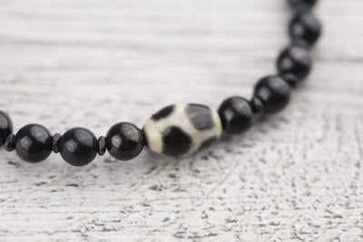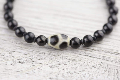 Dzi beads are believed to bring protection and prosperity to the wearer. The Longevity Dzi features a dark tortoise shell pattern and is also referred to as a "turtle back" Dzi. This design represents a long and happy life. It is known to improve health and healing while protecting from sickness and negativity.