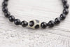 Beads are 6mm on stretchy cord. Dzi is about 14mm long and 10mm wide.