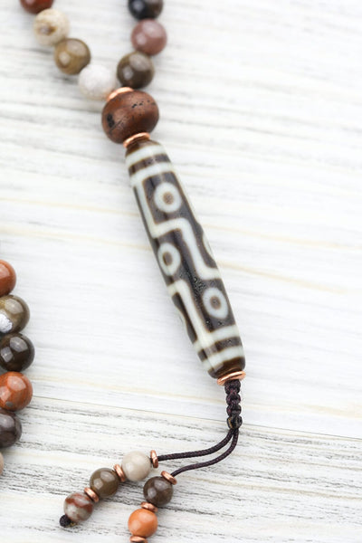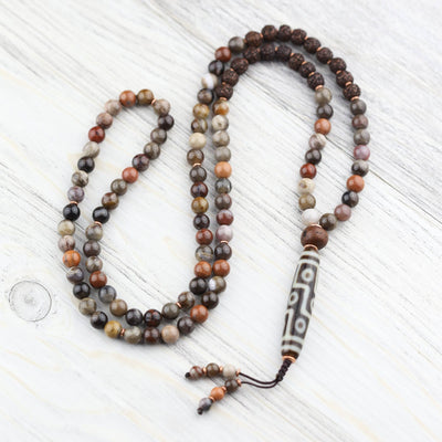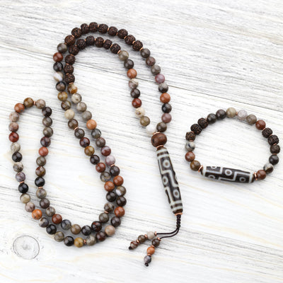 Pair it with the matching9 Eye Dzi Astrology & Petrified Wood Wrist Mala!