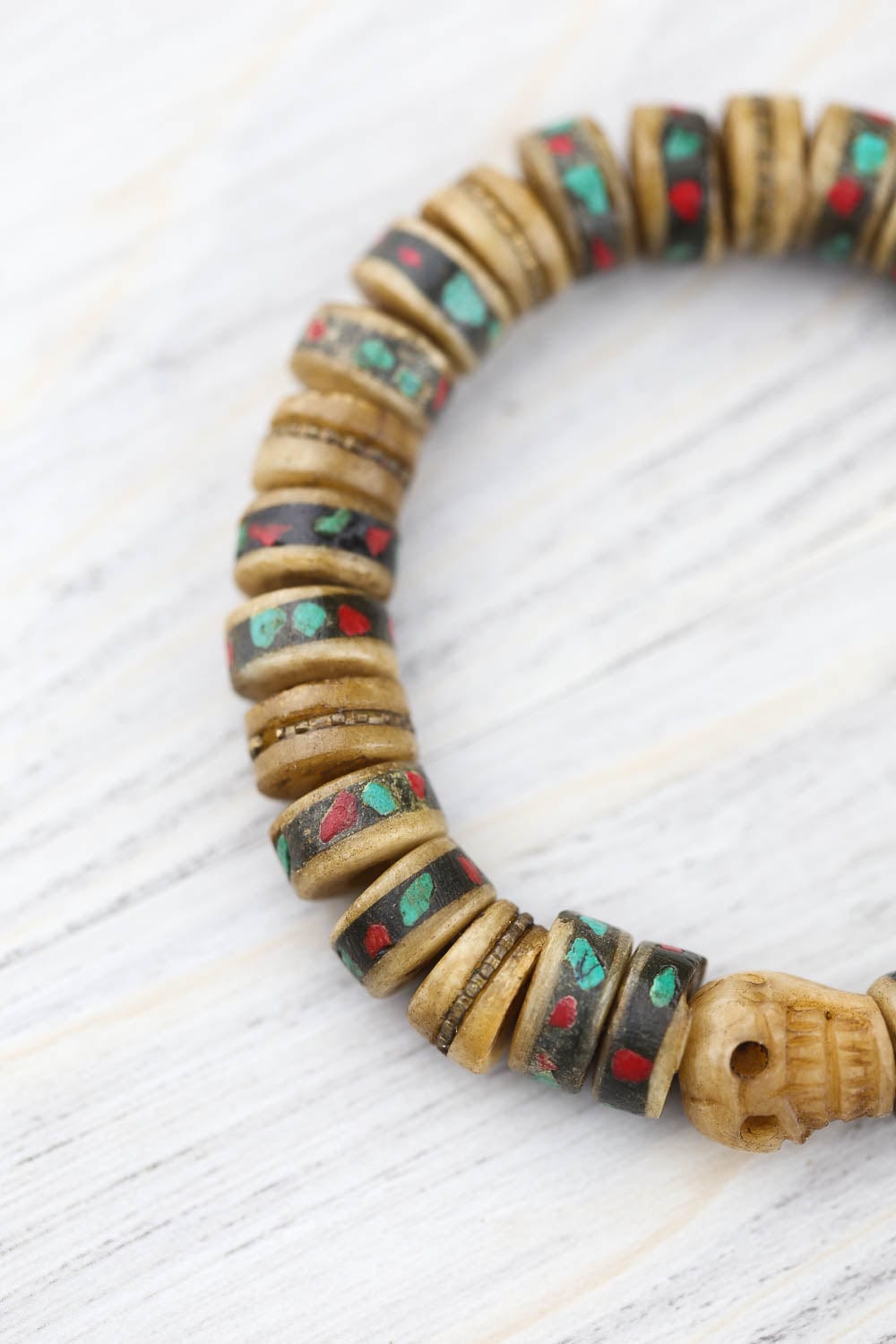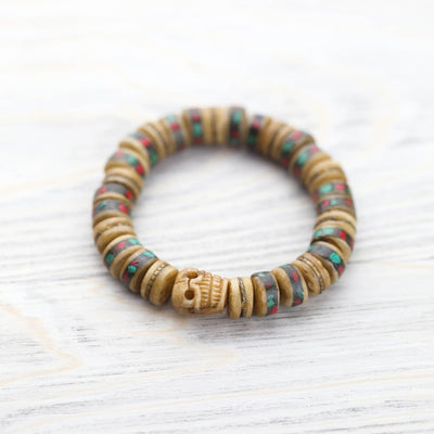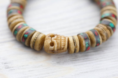 A note about bone usage: In the Himalayas, it is typical for large animals such as yak or water buffalo to be used for service, food, clothing, and ritual items. Given the limited amount of resources and the religious practices of the people in the region, it is important that none of the animal goes to waste. These amazing bone beads are handcrafted by artisans who recycle and reuse everything in daily life and spiritual practice.