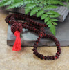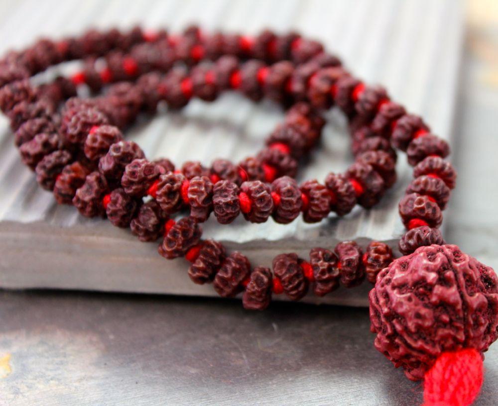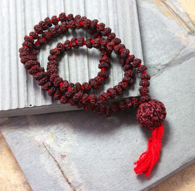 A 108 bead rudraksha mala with 5mm beads, each one hand knotted.