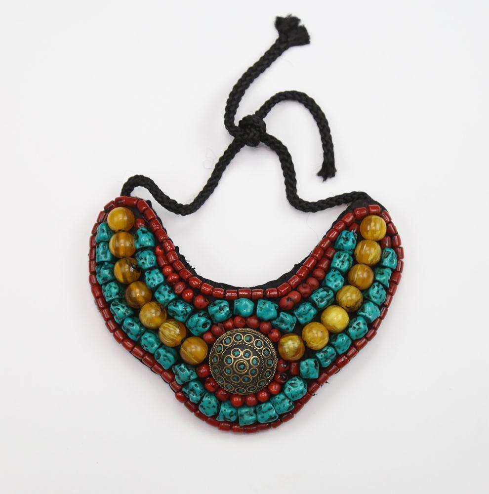 These traditional necklaces are making a comeback in Tibetan communities around the world. Ancient versions of these necklaces had thousands of dollars worth of trade beads, our modern version is all hand made in Nepal with faux coral beads and pressed tourquoise. One of a kind