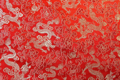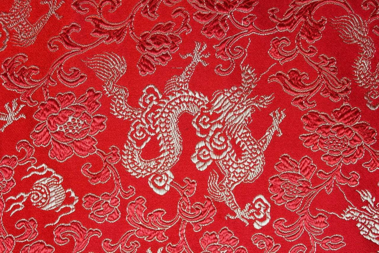 This heavy fabric is often used as a frame for a thangka. Perfect for making pillows, shams and anything that needs a Tibetan feel. Its a beautiful red with accent in soft gold. Fabric is 29 inches across. Poly/Silk blend.