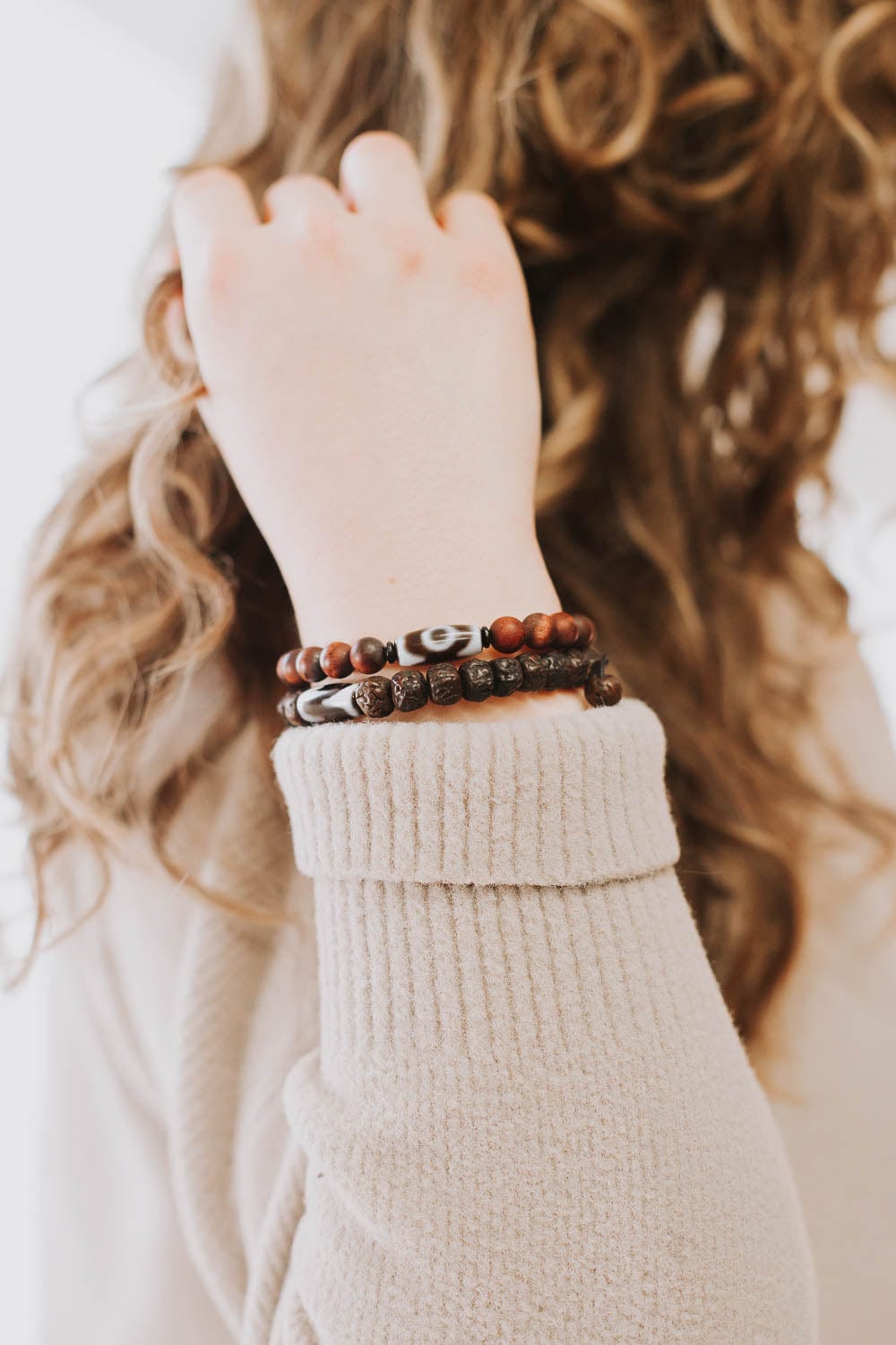 Beads are 8mm. Dzi bead is about 0.75 inch.
