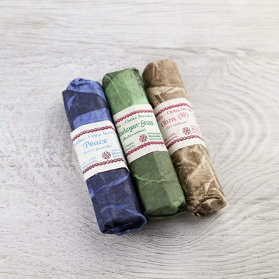 Peace - For Inner Growth: Features a light, fresh scent made from a blend of Myrrh resin, known locally as Ghanten Khampa, with Bodhi Chitta seeds—a symbol of enlightenment and supreme happiness. Created to clear negativity, uplift the mind, and inspire spiritual growth.