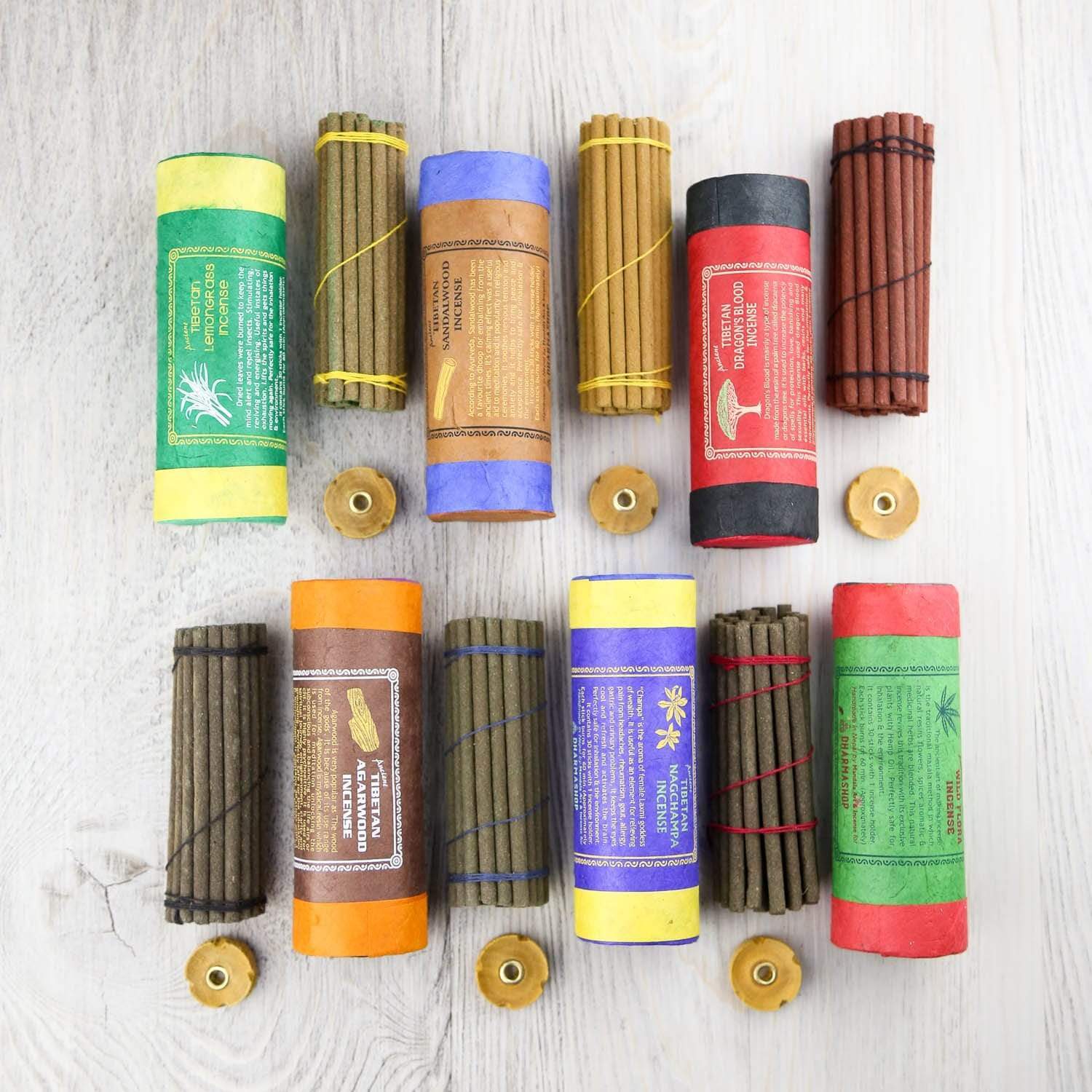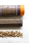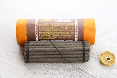 Includes about 30 sticks that measure 4 inches. Comes with a small wooden burner and is wrapped inside of an eco-friendly lokta paper tube.