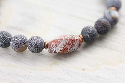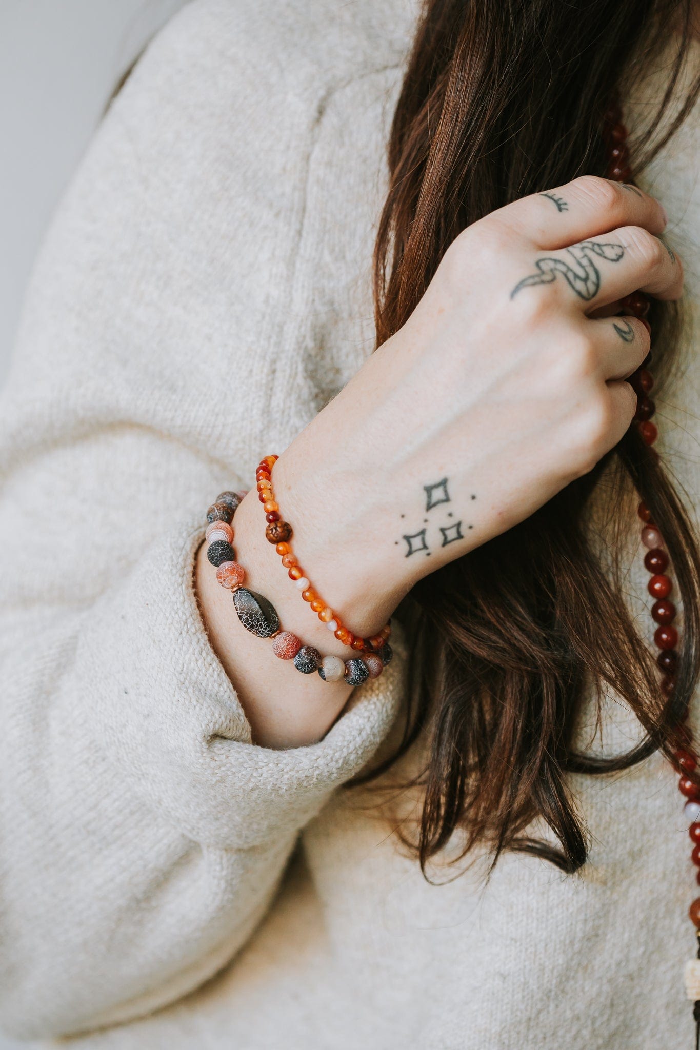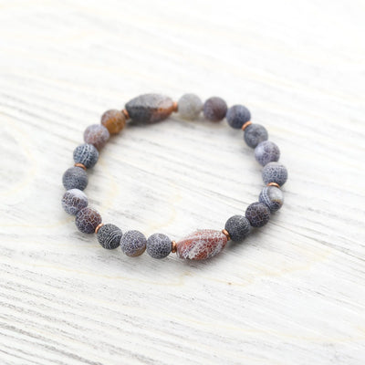 Each matte Dragon Vein Agate bead features a mesmerizing crackled finish that softens over time as it absorbs your skin's natural oils, revealing the stones inherent beauty and true brilliance underneath. The subtle transformation reflects your own journey of growth and personalized connection with your bracelet's energy.