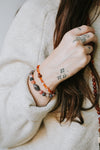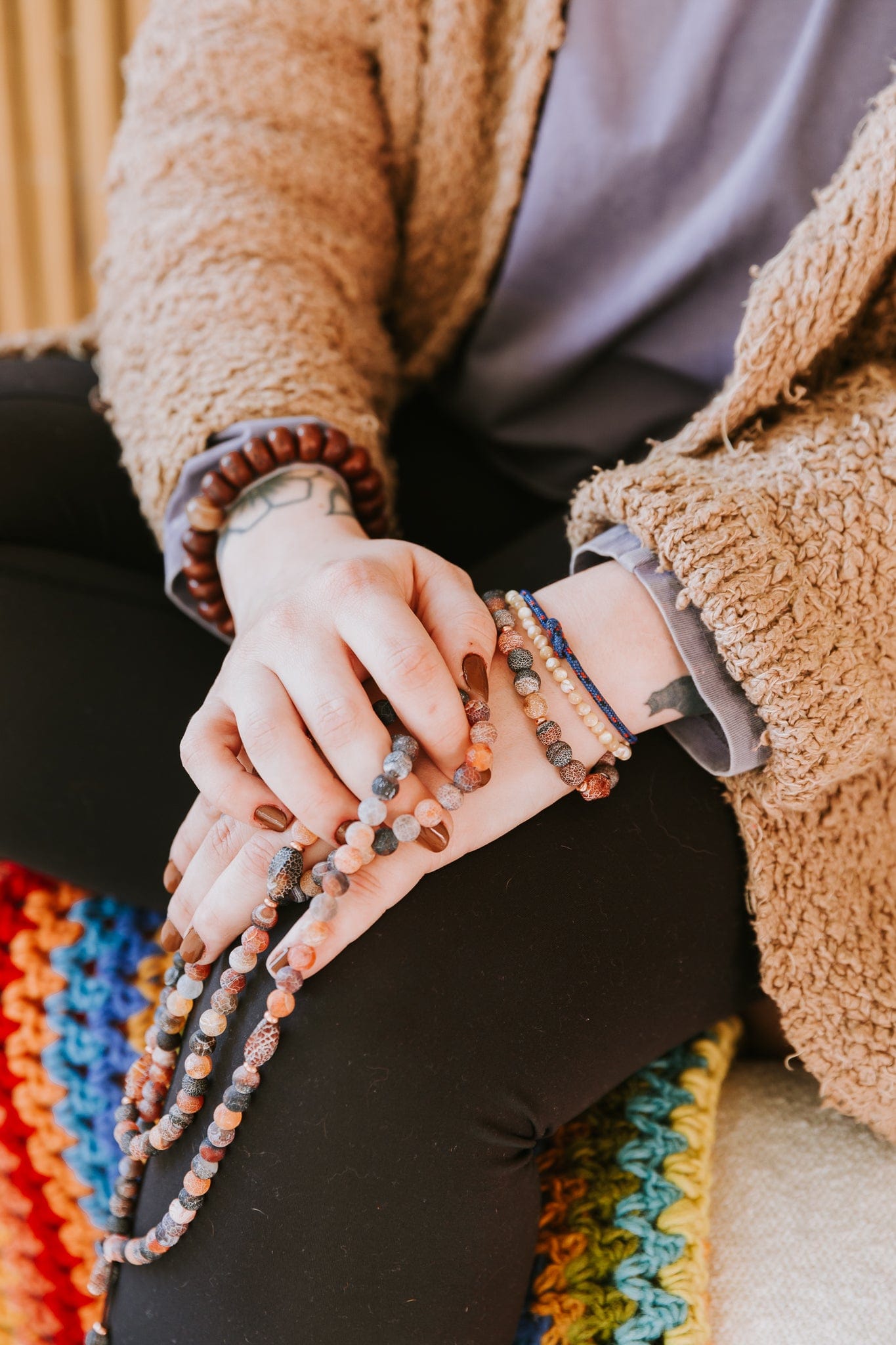 We finally sourced these incredible beads while in Arizona for the annual Tucson gem show in February of 2023. First noticing them on a team trip to Kathmandu, we regretted not purchasing them and bringing them home with us. Thankfully, some of our artisan and trade friends were coming to the show and were able to bring some to us in Tucson. This is also when we sourced the incredible centerpiece stones from another Tibetan friend. Unfortunately, supply issues limit this wrist mala to small batches. Although, such a unique bracelet being limited to a small quantity seems to be a harmonious issue to have. Get yours while they last!