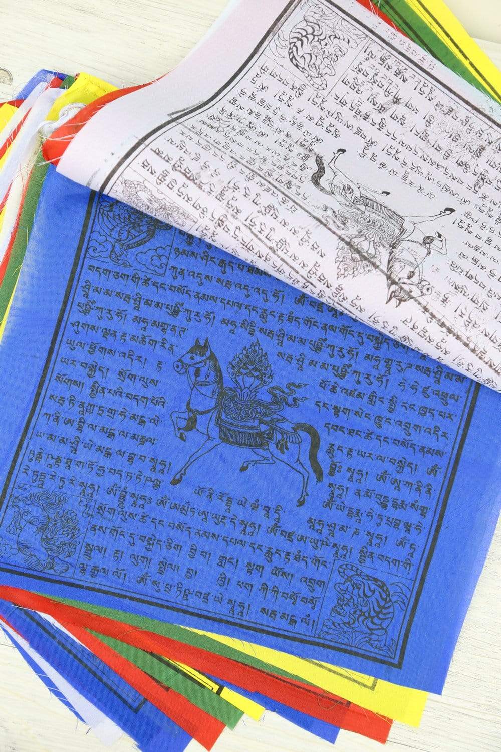 • Each flag features a large variety of prayers surrounding the center image of lungta, a Windhorse. Lungta is also the Tibetan word for 'prayer flag'.