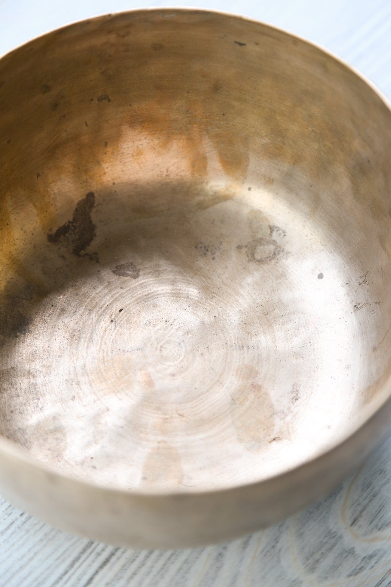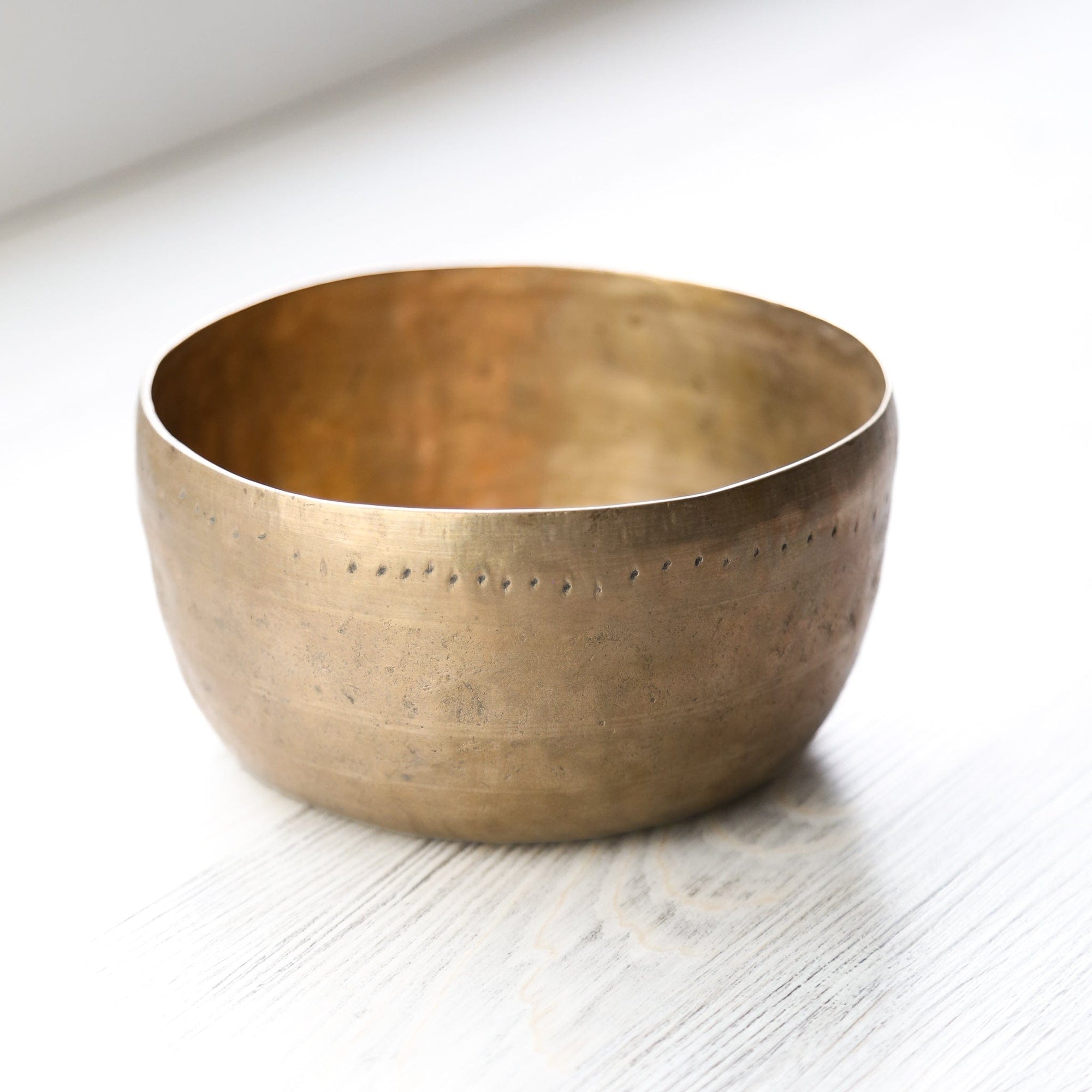 Each time we're able to get a small collection of these bowls is exciting as they are exceptional. Antique Tibetan singing bowls are highly sought after for their remarkable quality of sound, rich tones, and unique physical characteristics. Every handmade mark tells a story of the bowls history! In your hands, we know that these bowls will continue to be a lifetime heirloom, telling their story through their unique markings and golden tones.