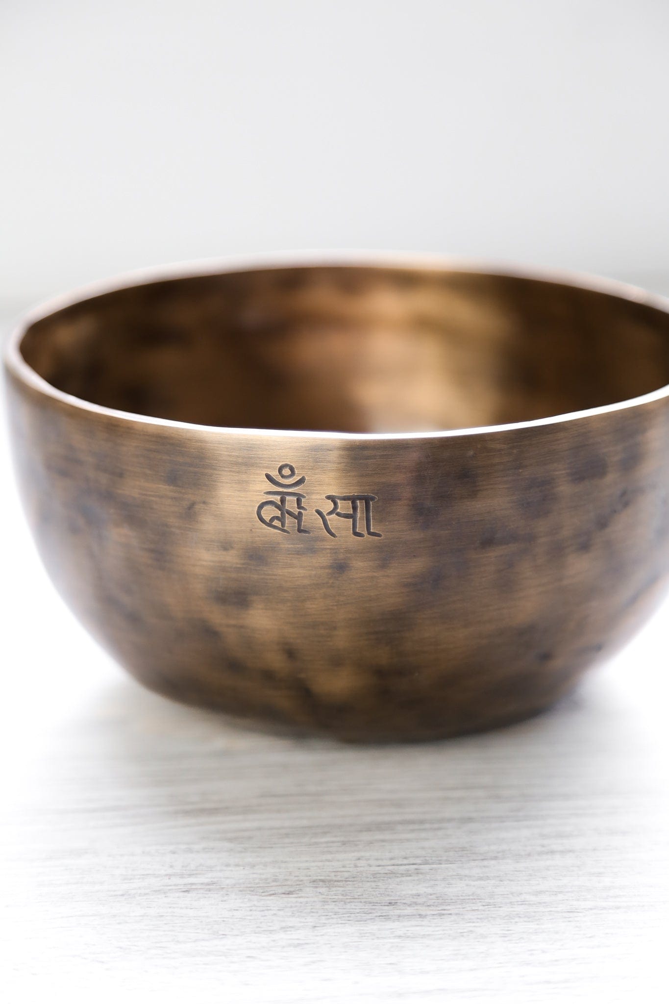 Each bowl features gorgeous hand carved details including an exclusive Full Moon Singing Bowl stamp and the mantra of compassion in Tibetan script. The mantra invokes the powerful benevolent attention and blessings of Chenrezig, the embodiment of compassion. The Full Moon Singing Bowl stamp is also known as a symbol of longevity and happiness.