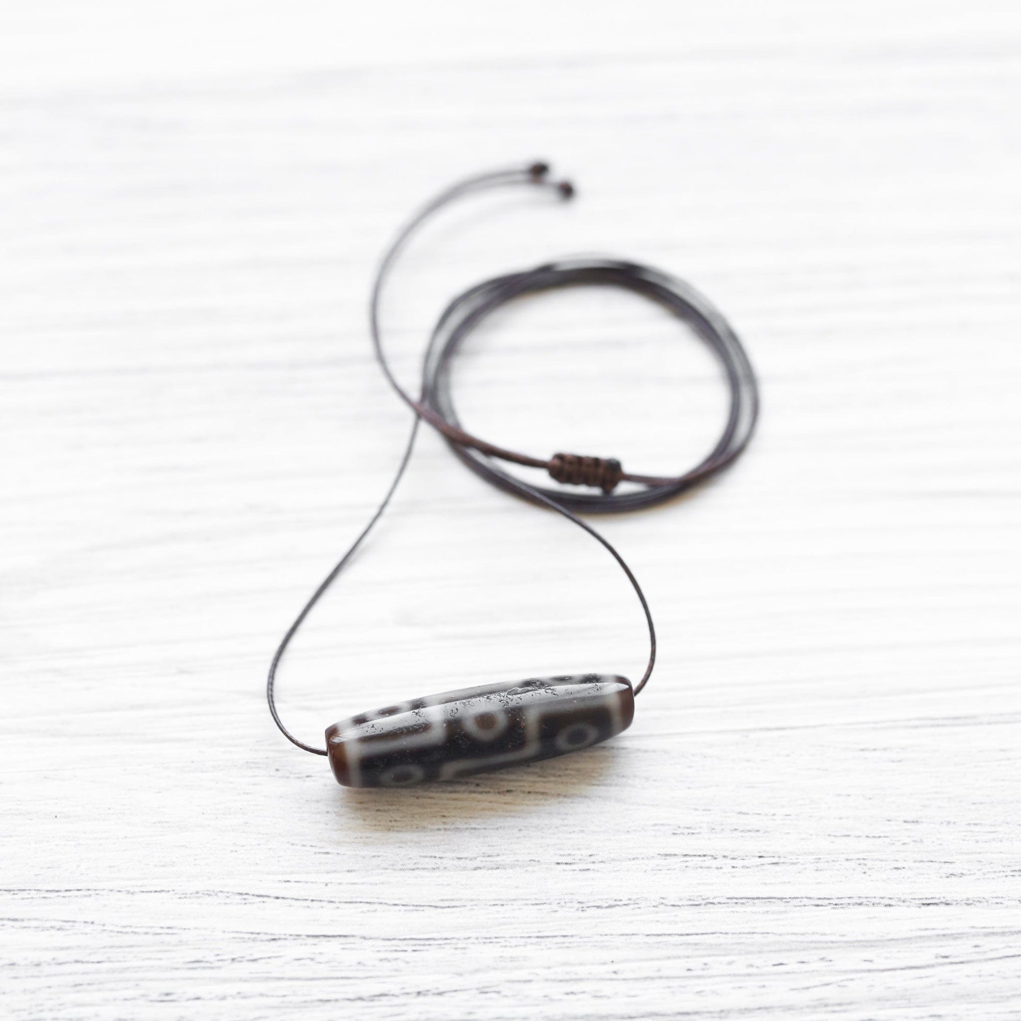 The Nine-Eyed Dzi bead assists its owner in gathering wealth, achieving good health and success, as well as gaining power, compassion, and glory. It is a mystical bead that acts as a protector, expelling evil. Nine-Eyed Dzi is one of the most sought after, believed to represent the nine planetary systems and its essence.