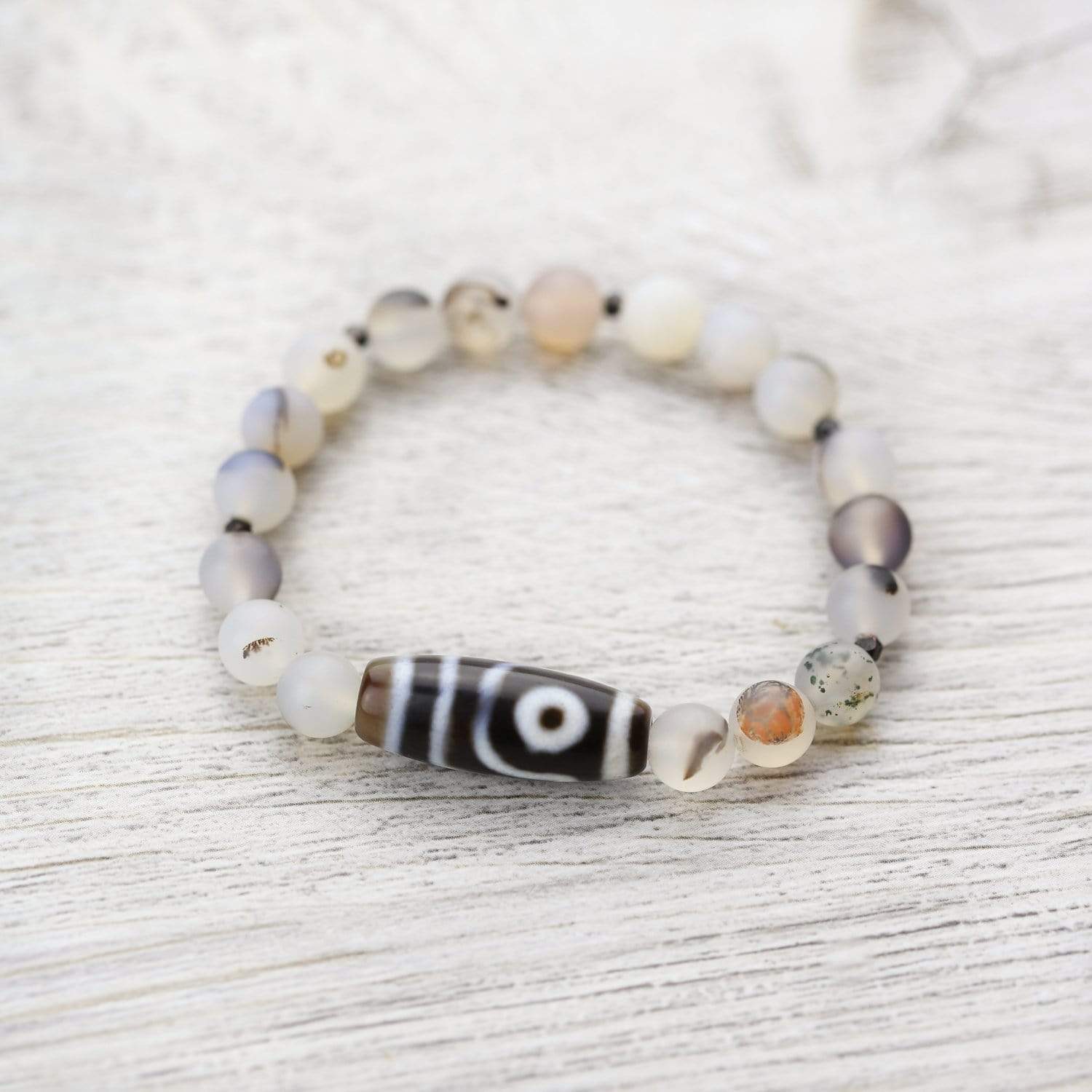 Dzi beads are believed to bring protection and prosperity to the wearer. Each bead is unique, making your bracelet one-of-a-kind. The 3 stripe design represents multiple fortunes to be gained by the owner. If powered by love of ones self, this bead can offer a great journey.