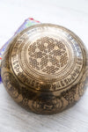 The base of the bowl displays a geometrical design based on the principles of sacred geometry. These designs are often used for meditation to connect on a deeper spiritual level.