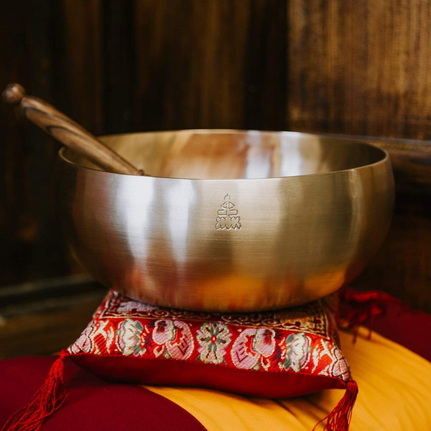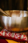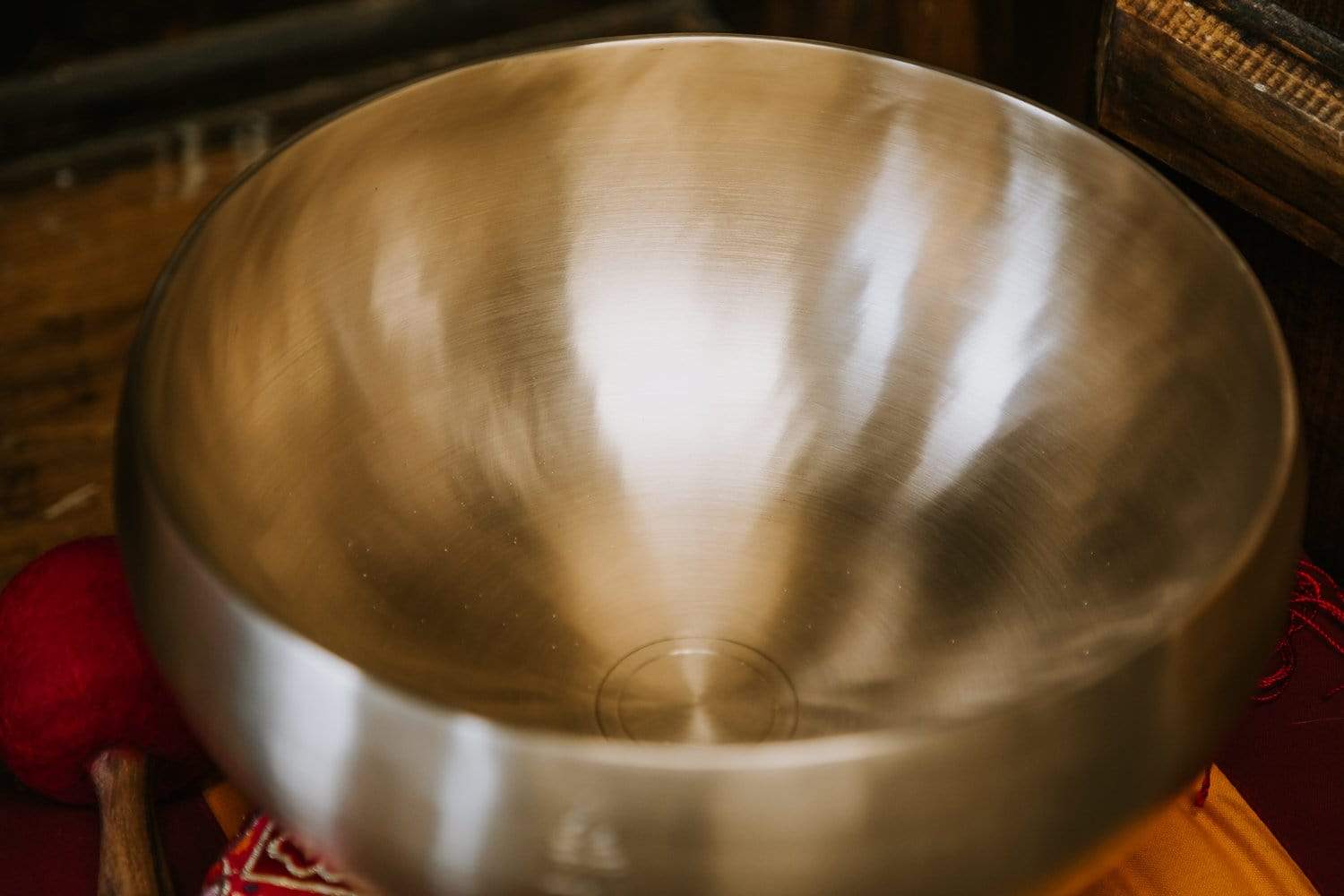 Bowl rings at a G note when struck with a woolen mallet. This note resonates with the Throat Chakra. It influences communication, dreaming, artistic expression, good judgment, self-belief, wisdom, and truthfulness.