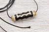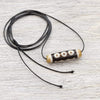 Bead measures just over 1.5 inches long and is 0.25 inch wide. Adjustable necklace opens to about 42 inches around and can tighten as desired.