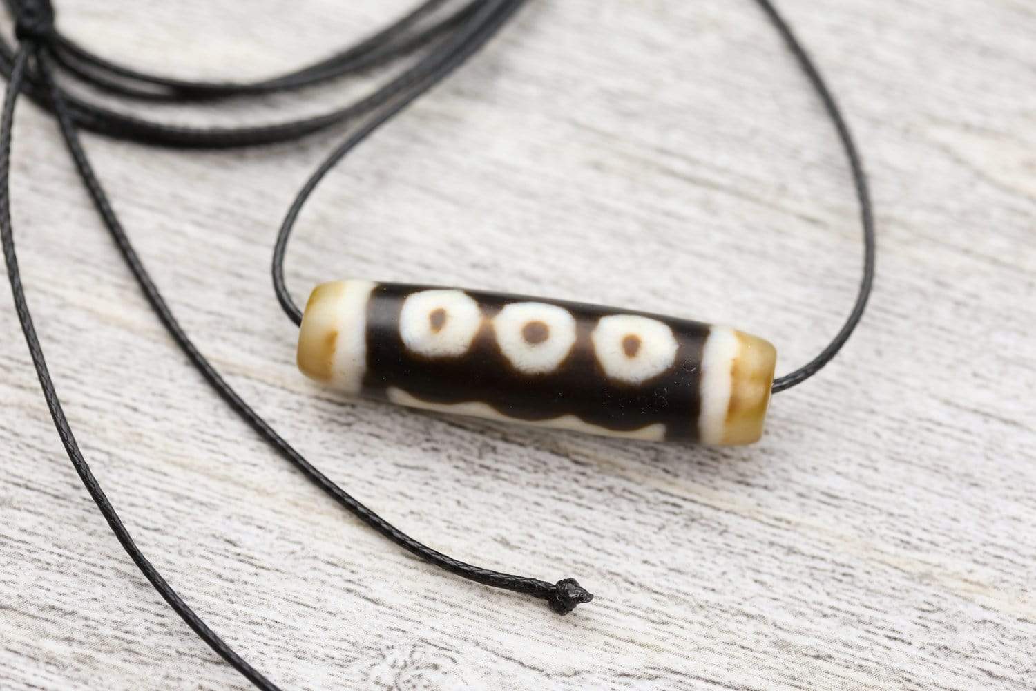 Dzi beads are believed to bring protection and prosperity to the wearer. The 5-Eyed Dzi is considered a magical item and is highly sought after. It assists in obtaining your desires and brings about endless happiness.