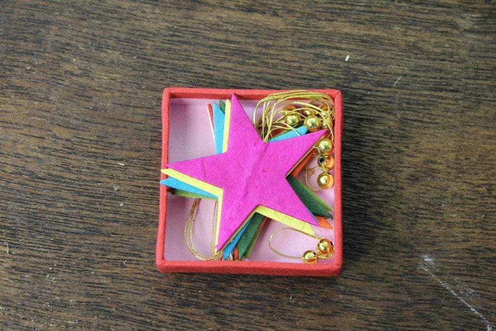 These beautiful hand made paper garlands are made of Lokta paper. Lokta is made from removing the bark of the Daphne bush, the bark regrows each year making the paper 100% sustainable.