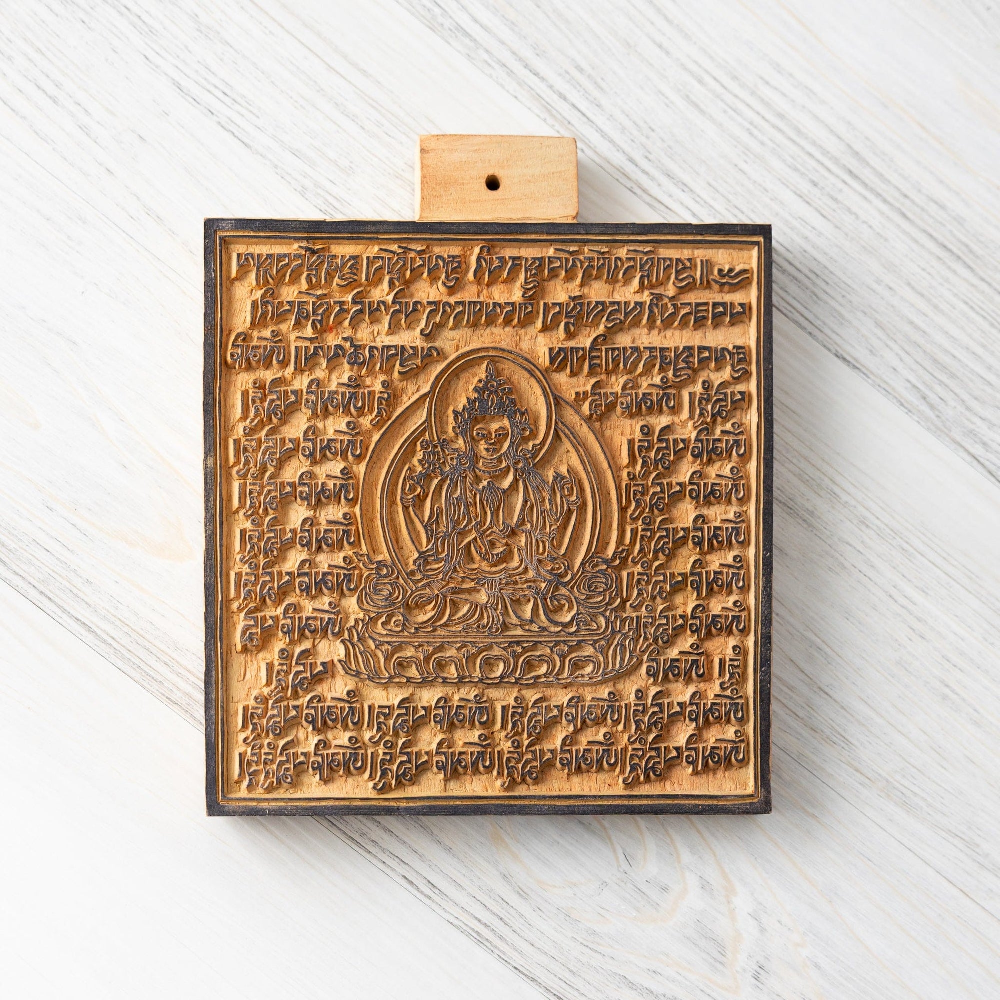 Wood blocks are available in 4 designs - Windhorse, Medicine Buddha, Green Tara, and White Tara surrounded by their associated mantras.