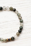 • Made with genuine green Rutile Quartz and a mixture of antique brass and gunmetal spacers.