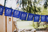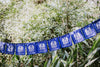 • This is truly an eye-catching set of prayer flags.  All ten flags are deep blue and printed in bright white.