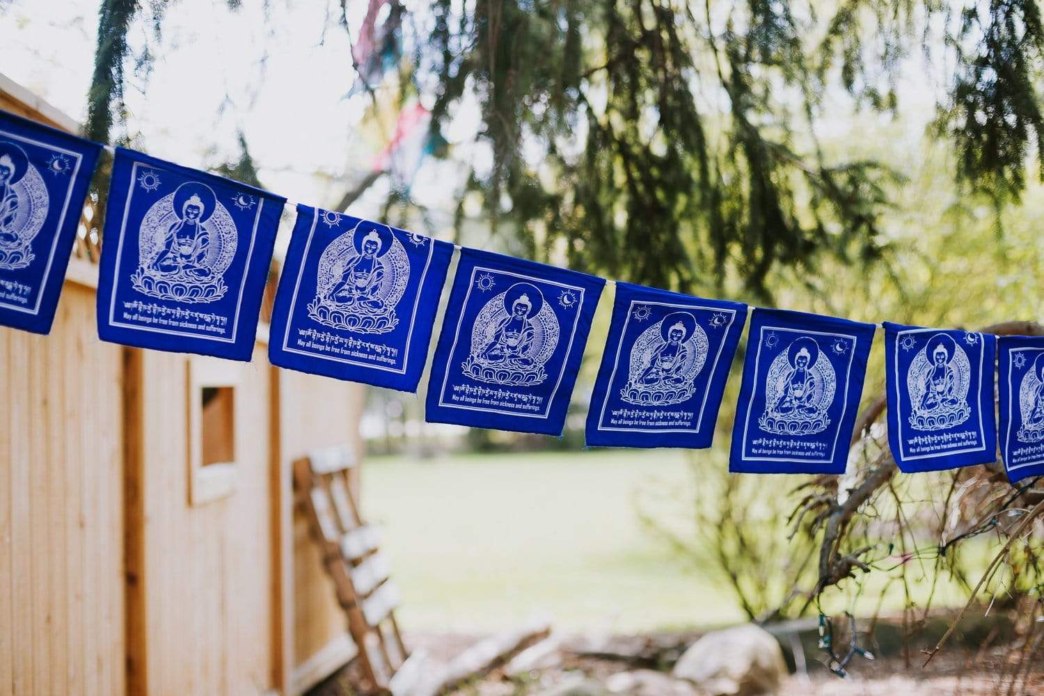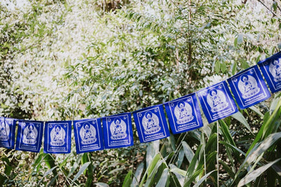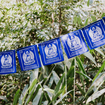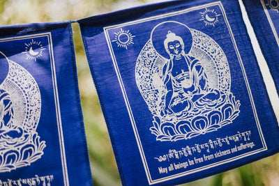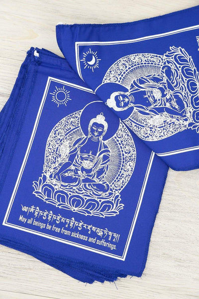 The Medicine Buddha is a deity of compassion and healing. When you hang these flags in your garden this important message will touch everyone touched by the wind:  "May all beings be free from sickness and sufferings."