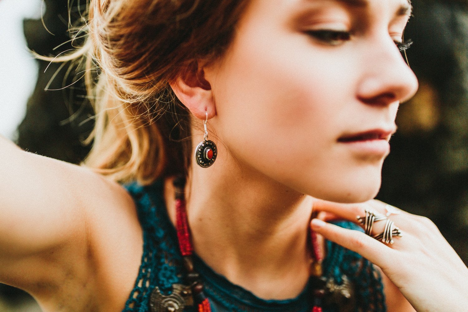 Earrings measure approximately 1 5/8 inch tall from the top of the bail, and about 3/4 inch wide. Antique coral stone is about 1/4 inch tall. Handmade in Nepal.
