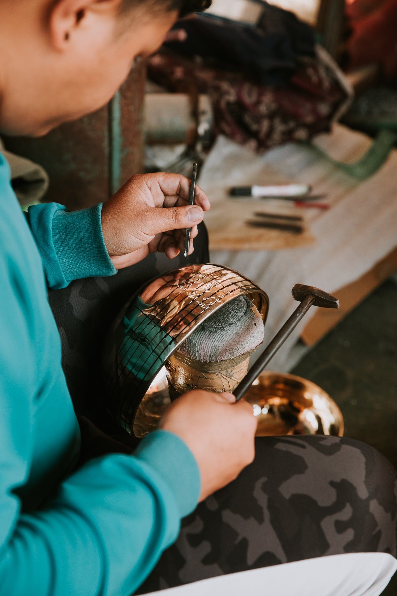 As you play your singing bowl, its vibrations will resonate not only with you but also carry the good intentions of the mantra into the atmosphere. The healing vibrations can help harmonize the chakras, promote a sense of well-being, and cultivate positivity in your surroundings.