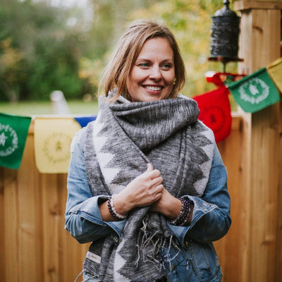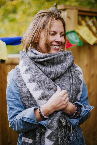 • A favorite from our last trip to Nepal! This classic gray woolen scarf is completely hand loomed by the Nepalese women weavers in Kathmandu.