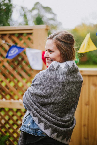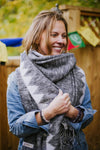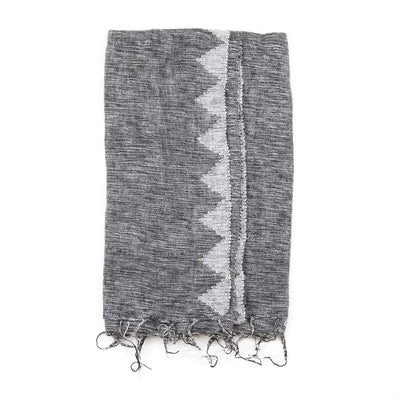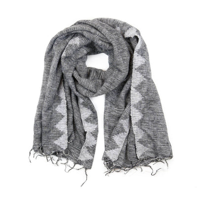 • Our essential heather gray scarf features a white triangle design along the edge. The texture and simplicity of this shawl makes it great for every occasion - it pairs well with just about everything!