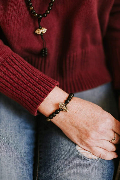 • Featuring bold Obsidian beads and an antiqued brass Dorje charm, this bracelet is more than just jewelry - it's a powerful tool for grounding and transformation.
